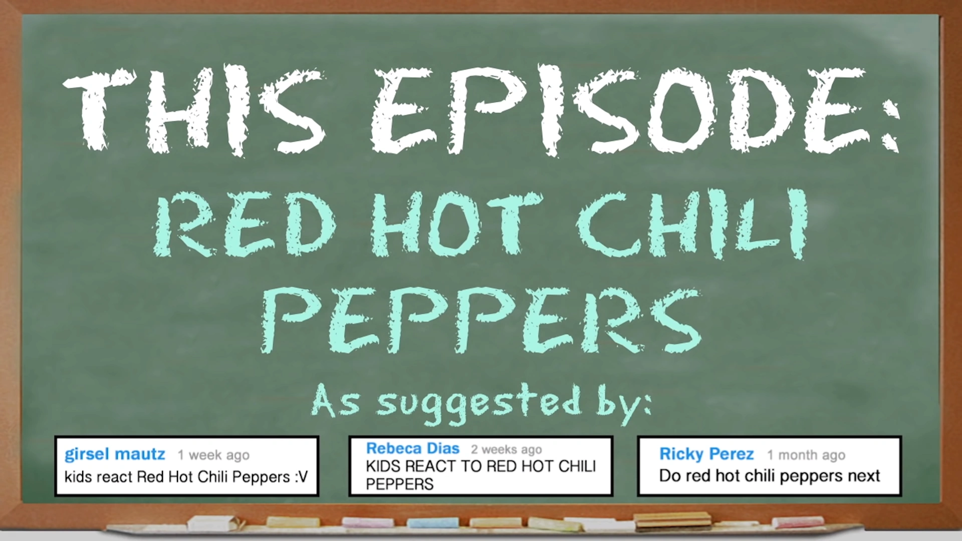 KIDS REACT TO RED HOT CHILI PEPPERS is the one hundred and seventy-ninth episode of the FBE series Kids React. In this episode the kids react to the band Red Hot Chili Peppers by hearing: